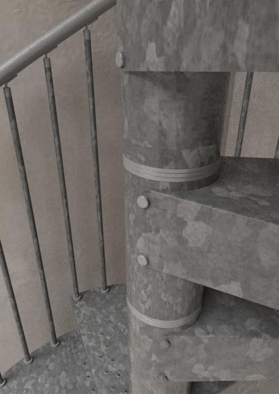 Galvaniseret spindeltrappe der er varmgalvaniseret er ideel til udendørs brug og er takket være den varmgalvaniserede overflade særligt modstandsdygtig overfor atmosfæriske stoffer.