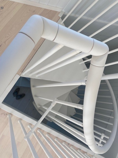 - Børset bøgetræ – spindeltrappe leveres med trappetrin i børstet bøgetræ.