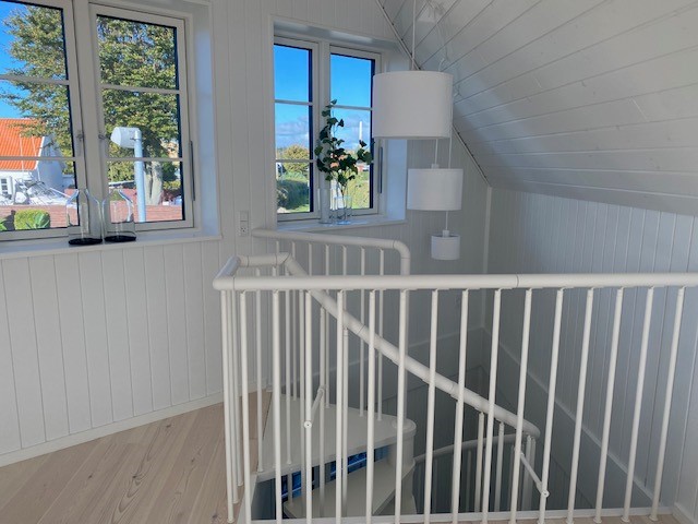 Denne trappe er unik, da trin og håndliste begge er lavet i bøgetræ i farven hvid, som er heldækkende. Dette giver et flot og unikt finish.