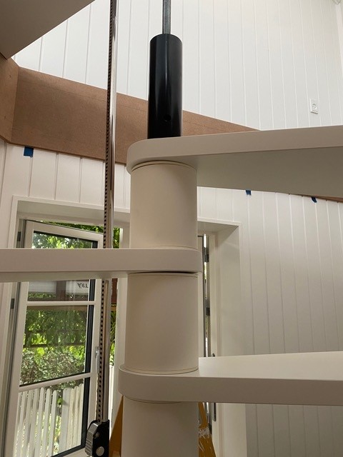 Spindeltrappe er sammensat af metalcylindre indskudt med nylonflanger. Antallet af flanger indsat mellem cylindrene bestemmer højden af stigrørene.