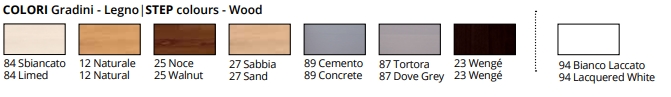 Trinene er fremstillet af 40 mm tykt bøgetræ. Uden nogen knaster eller revner, hvilket sikrer maksimal stabilitet og mekanisk modstand takket være ”Finger Joint technology.” Derudover er der brugt giftfri vandbaseret maling i 3 lag.