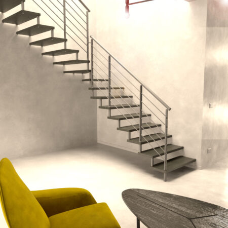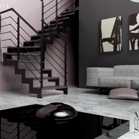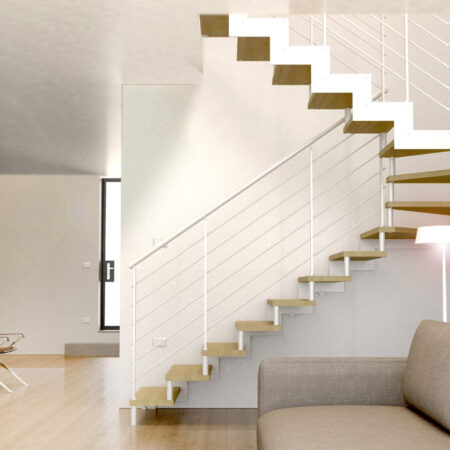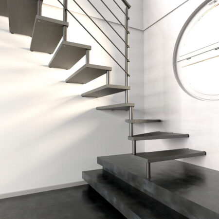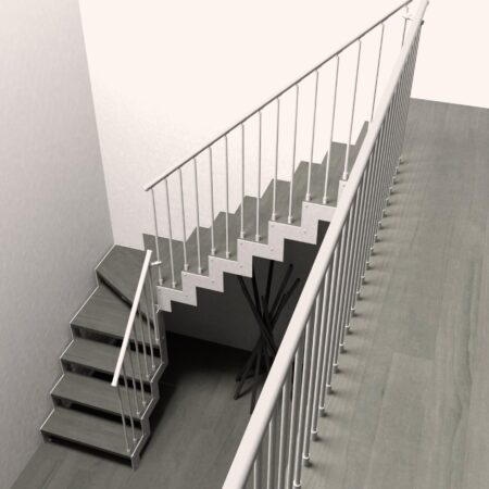 – og dobbelt vange kombinerer elegant forskellige materialer for at opnå en smuk og solid trappe, der er let at samle. Kvartsvingstrappen er ideel til indendørs brug. Dens enkle og rene linjer tilpasser sig enhver form for miljø fra moderne til klassisk. Hvert element i trappen er designet til at harmonisere produktets unikke stil.