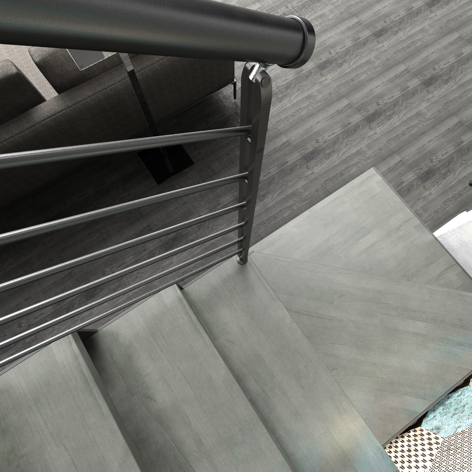 – og dobbelt vange kombinerer elegant forskellige materialer for at opnå en smuk og solid trappe, der er let at samle. Kvartsvingstrappen er ideel til indendørs brug. Dens enkle og rene linjer tilpasser sig enhver form for miljø fra moderne til klassisk. Hvert element i trappen er designet til at harmonisere produktets unikke stil.